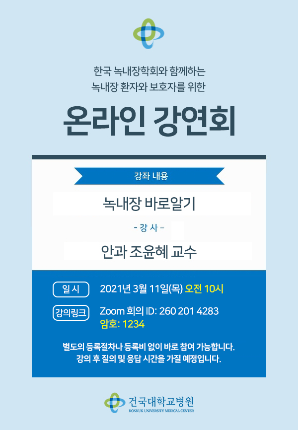 3/11(목) 녹내장 바로알기 온라인 강연회 안내